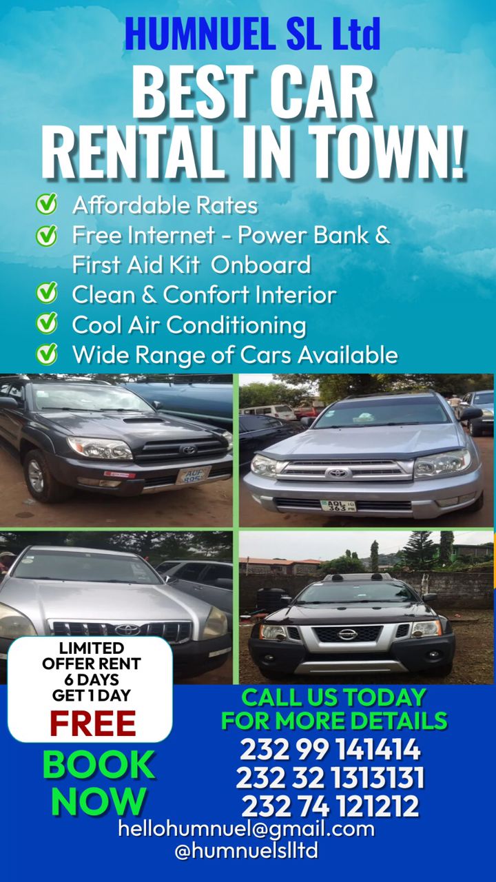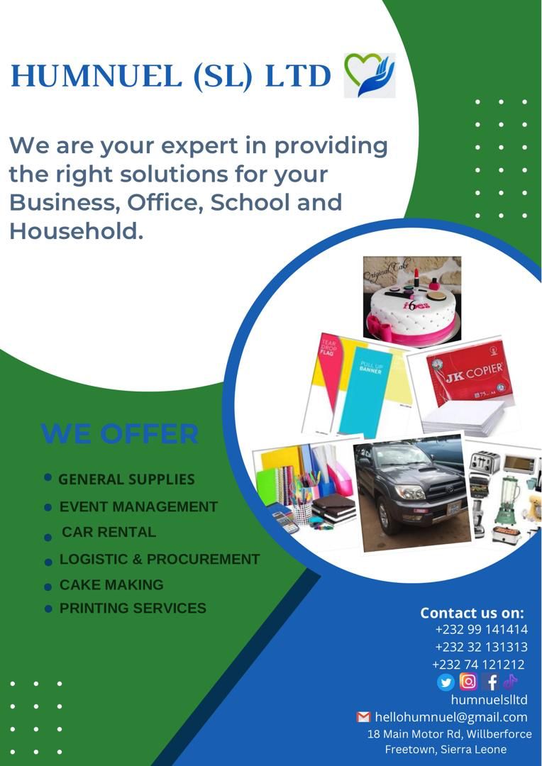 Humnuel SL Ltd is one of Sierra Leone most reliable and affordable General Supplier, Event Management and Car Rental Company In Sierra Leone!