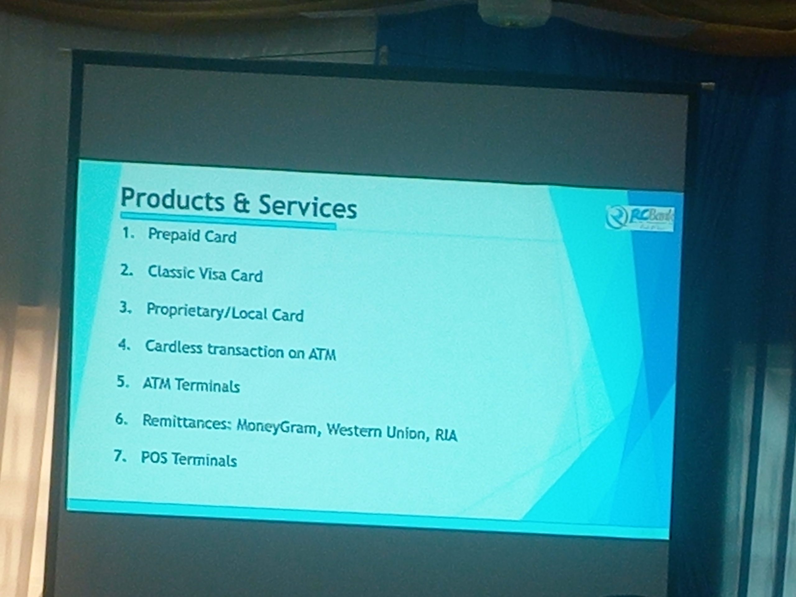He described RCBank Visa Prepaid Card as reloadable and the cardholder can either be an account holder or non account holder and denominated in Leones. He added that this will give great opportunity to reach out to all the people that are currently excluded from the financial system in Sierra Leone.