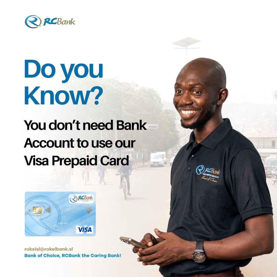 The RCBank Prepaid Card is designed to enable Sierra Leoneans in the diaspora and at home to make purchases online, withdraw cash at an ATM, and pay for goods and services safely and conveniently from anywhere in the world.