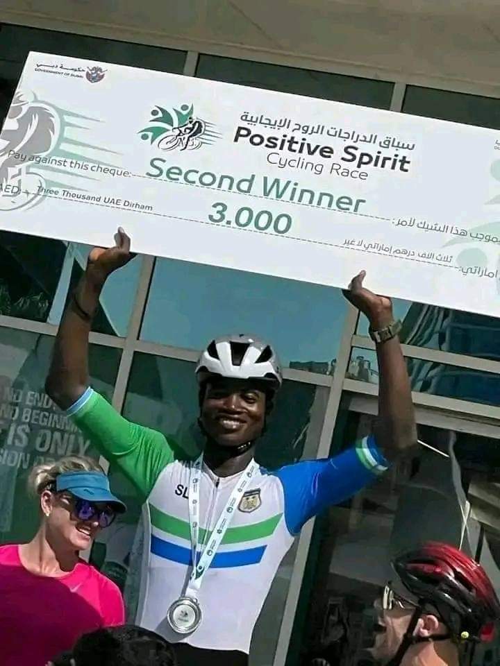 With a remarkable performance, the cyclist won a cash prize of 3,000 Dirhams, equivalent to approximately 18,000 Leones. This achievement not only brings honor to the country but also highlights the growing potential of Sierra Leonean athletes in international sports.