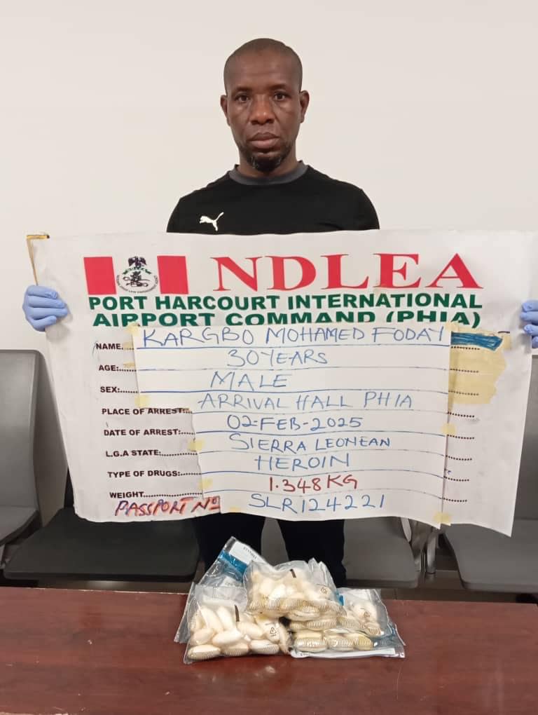 A man using a Sierra Leonean passport has been arrested at Port Harcourt International Airport after excreting 62 wraps of heroin.