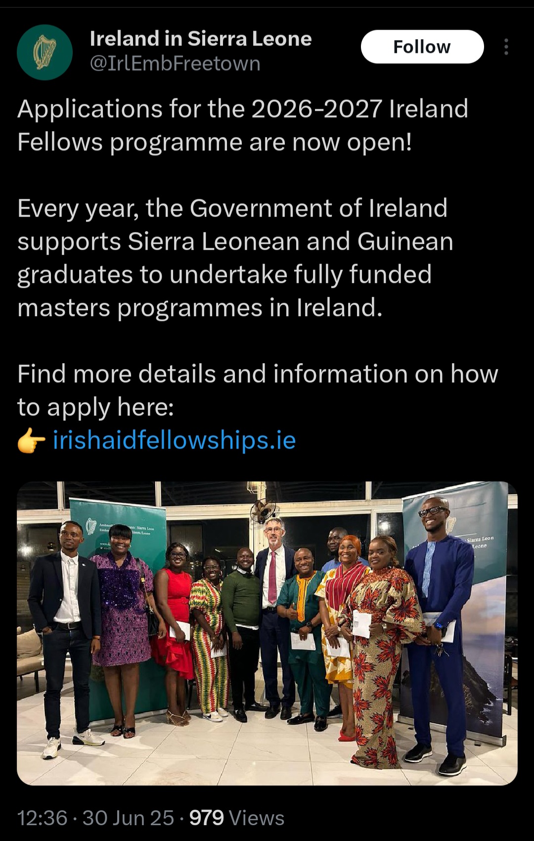 Anyone interested in applying can find more information about the programme, eligibility requirements, and how to apply by visiting the official website: irishaidfellowships.ie.