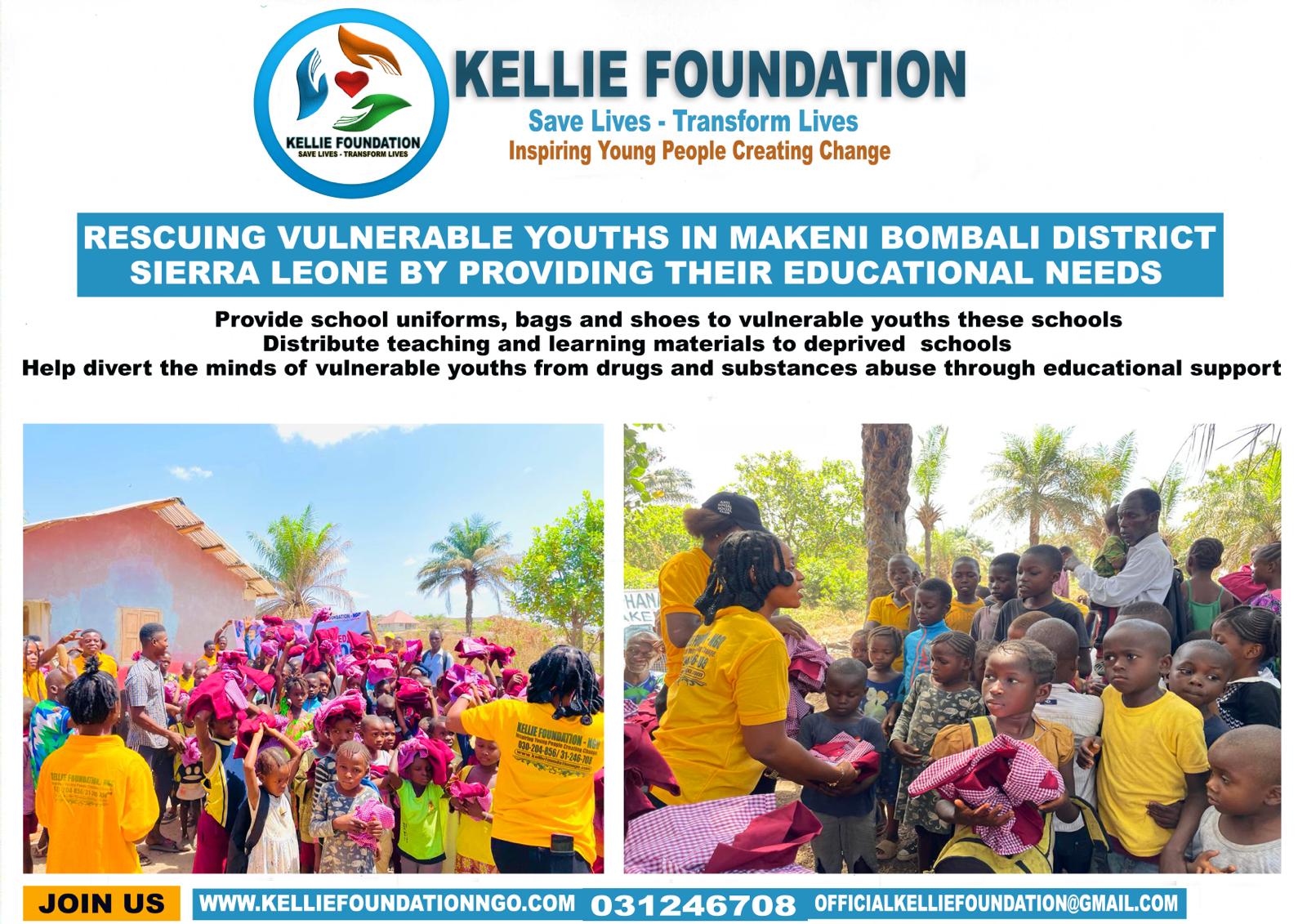 Highlighting the urgency of the situation, the Kellie Foundation emphasizes the critical role of education in steering these youths away from harmful behaviors. The foundation’s project objectives include the distribution of learning materials, school uniforms, bags, textbooks, shoes, bags of rice, and other essential items to over 500 vulnerable youths attending deprived schools in Makeni City.