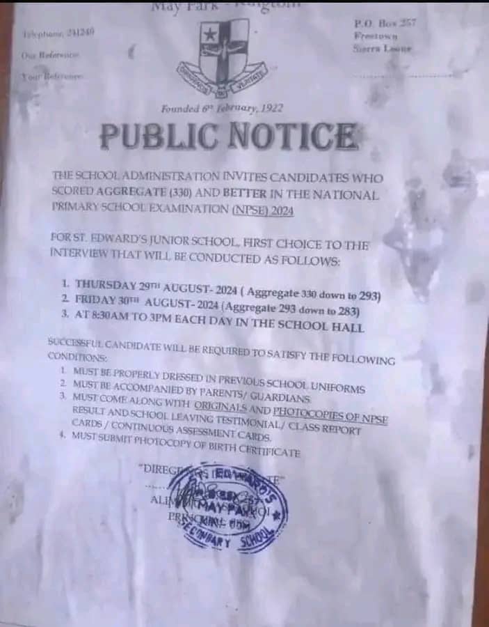 The ST Edward’s Secondary School has announced that it will be conducting interviews for prospective pupils who participated in the National Primary School Examination (NPSE) and have selected the School as First Choice.