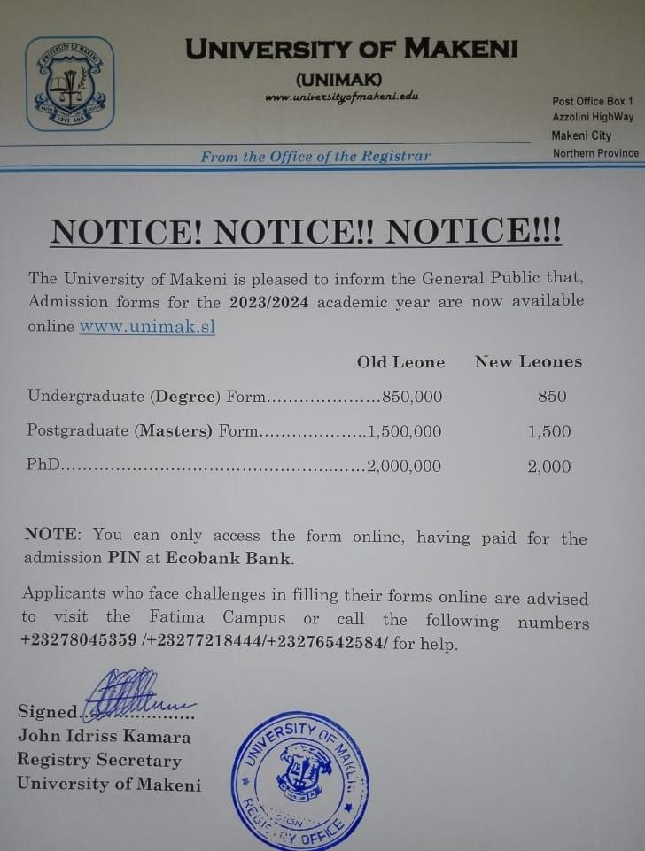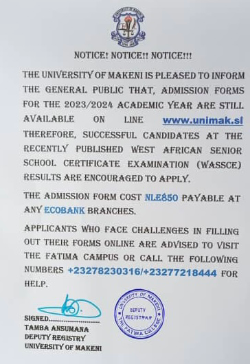 In a move that promises to shape the future of many aspiring students, the University of Makeni has officially announced the release of its admission forms for the upcoming 2023/2024 academic session.