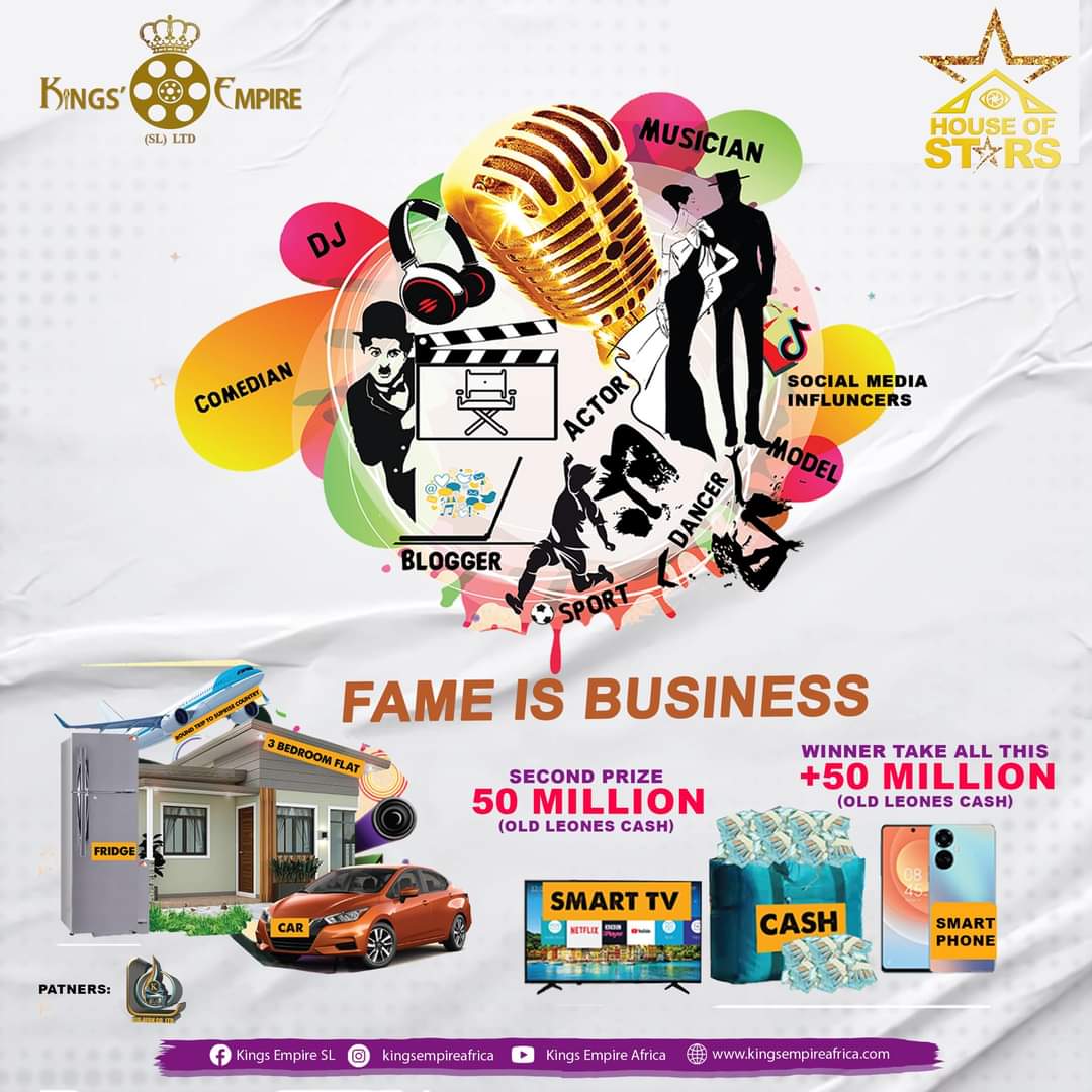 Kings Empire Sierra Leone Limited has officially announced the inaugural season of the ‘House OF Stars’ reality TV show, featuring the most extravagant grand prizes to date.