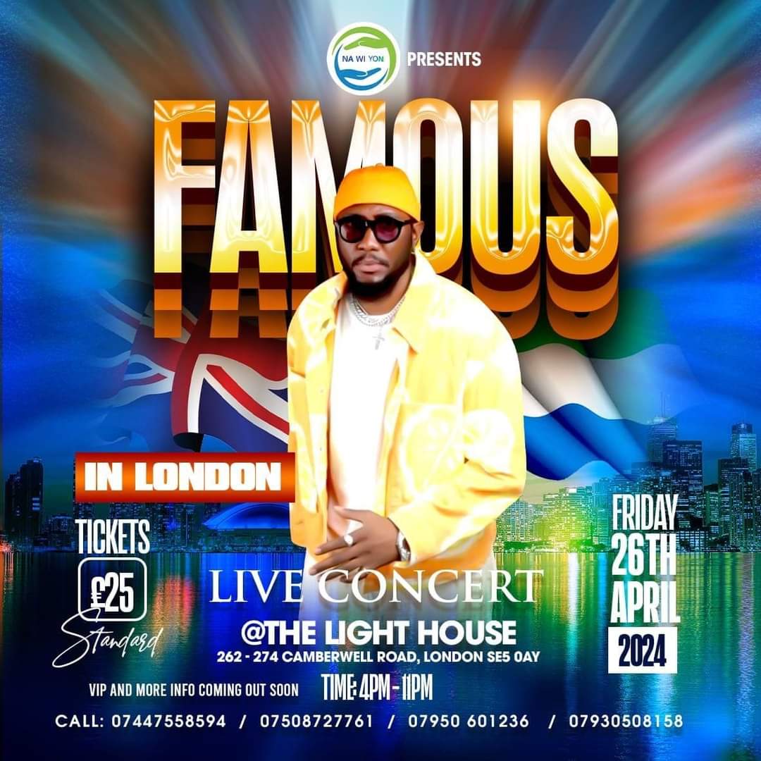 Famous is one of the Sierra Leonean artists who have released different hit singles and albums since the start of his career and a lot of his fans are optimistic about his upcoming show in London.
