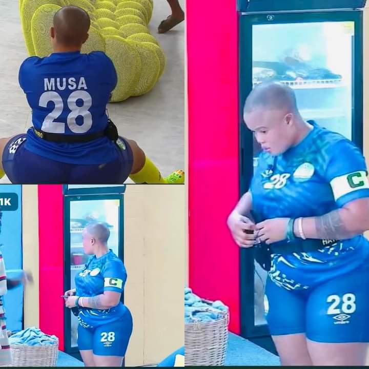 Hawa Tombo former wife of Leone Star player, Musa Tombo was seen putting on Musa’s Leone Star jersey in the house of the House of Stars Reality TV show.