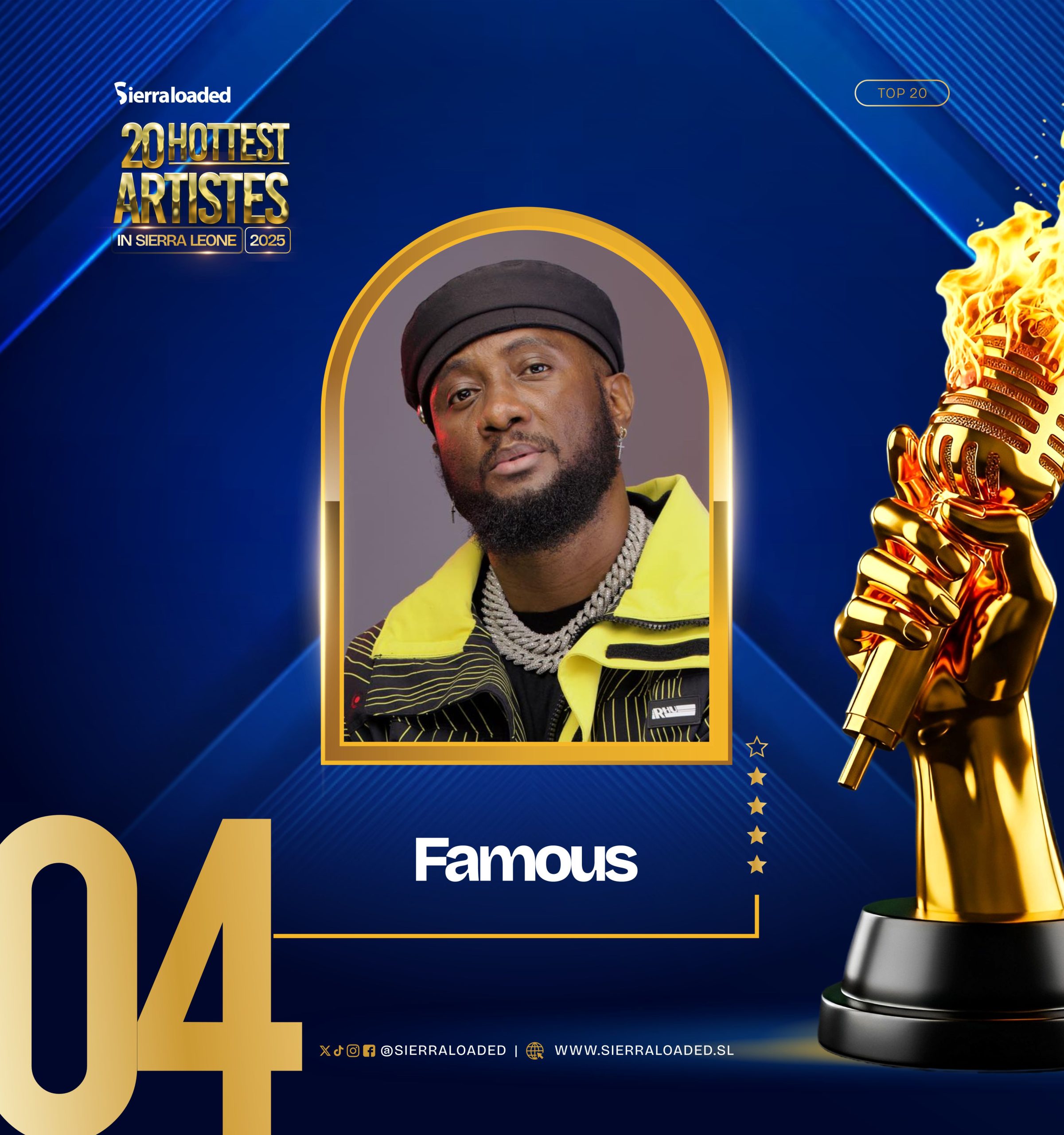 For sweeping international awards, delivering the year’s most relatable anthem, and remaining the country’s most dependable crowd-puller, Famous is the 4th Hottest Artiste in Sierra Leone 2025.
