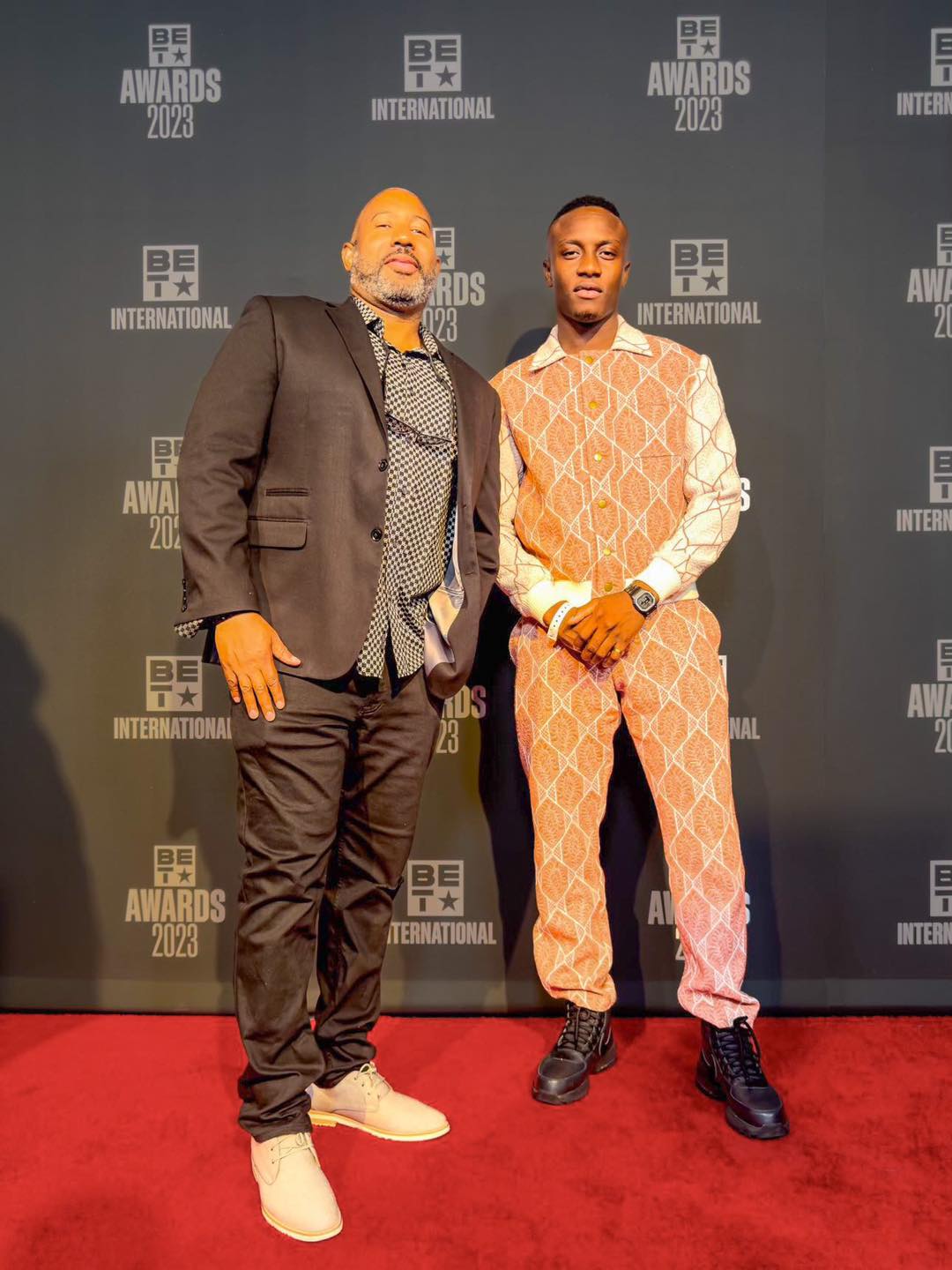 “And then a marathon began. Drizilik flew from Ghana to Sierra Leone where he had to perform at Lebanese School, then to Gambia then to London where he had 24 hours to pick up his LABRUM LONDON outfits for the awards and shoot some promotional content for his new single Vote with Idris Elba. From London he flew to LA, he went straight to BET House from the airport for a meet and greet with the BET International team and execs, met big man Camidoh who is nominated tonight. Go home sleep (11 hour time difference between LA and Salone) and then suit up again tonight to head to the awards.