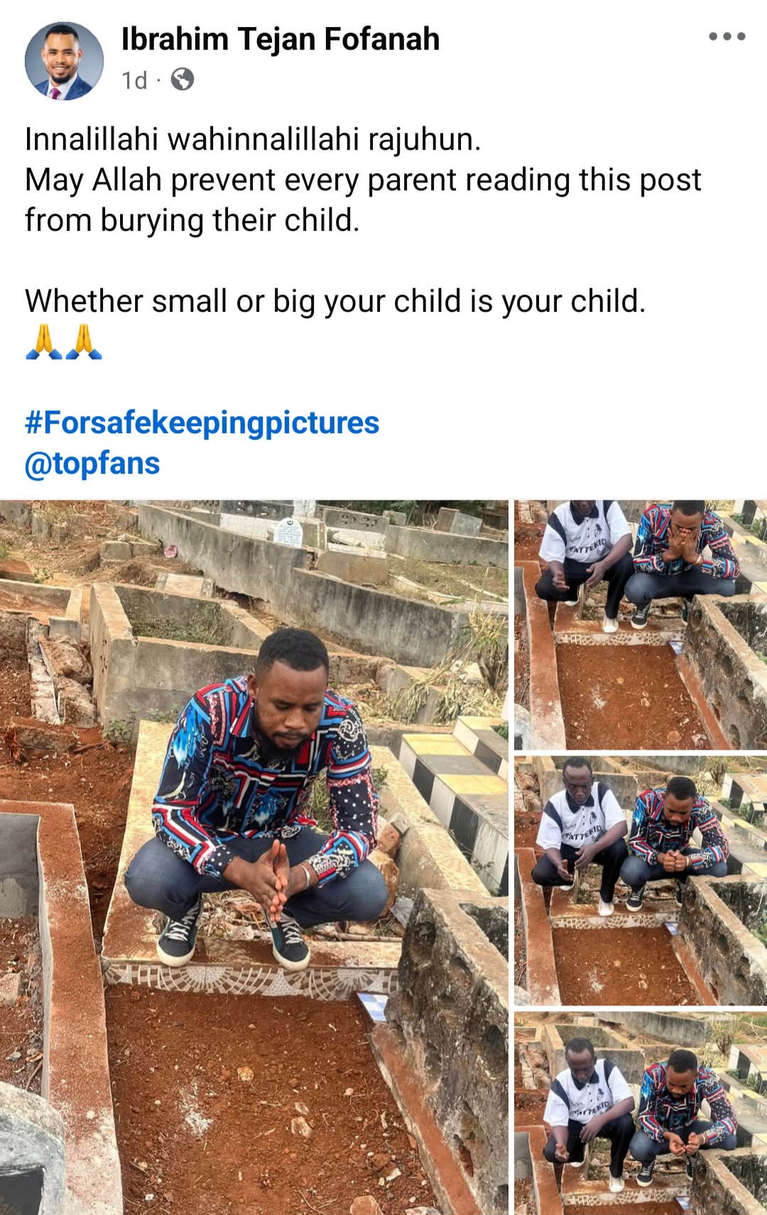 Ibrahim Tejan Fofanah, the former reality TV star and youth advocate, is mourning the tragic loss of his son. The young boy, one of his twin sons, passed away after suffering from liver complications.