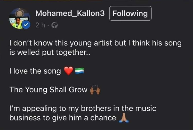 Although Mohamed Kallon admits that he is not personally acquainted with this budding artist, he believes that the song is incredibly well-crafted and worthy of recognition. He wholeheartedly enjoys the track and emphasizes the importance of supporting rising talents in the music industry.