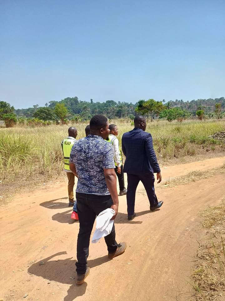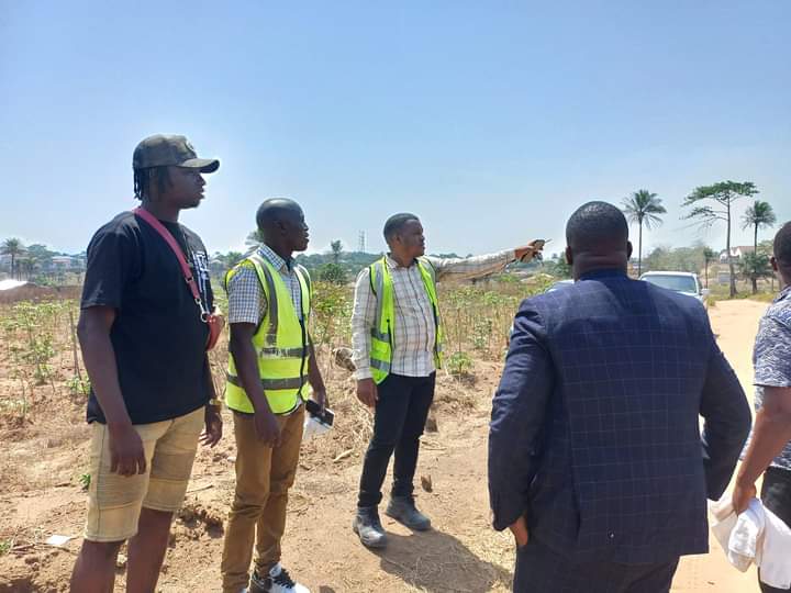 Sierra Leone Entertainment Ambassador and musician Amara Dennis Turay popularly known as Kao Denero on Thursday 25th April together with Land Surveyors from the Ministry of Lands, Consultant, Construction Engineer, and other stakeholders paid a visit to the proposed site for an entertainment auditorium at 6 Mile.