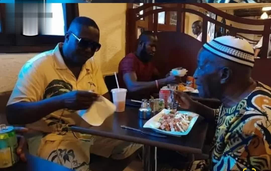 Sierra Leone Ambassador of Entertainment, Dennis Amara Turay, popularly known as Kao Denero, has recently been seen in a photograph on social media enjoying breakfast with his father at Crown Bakery in Freetown.