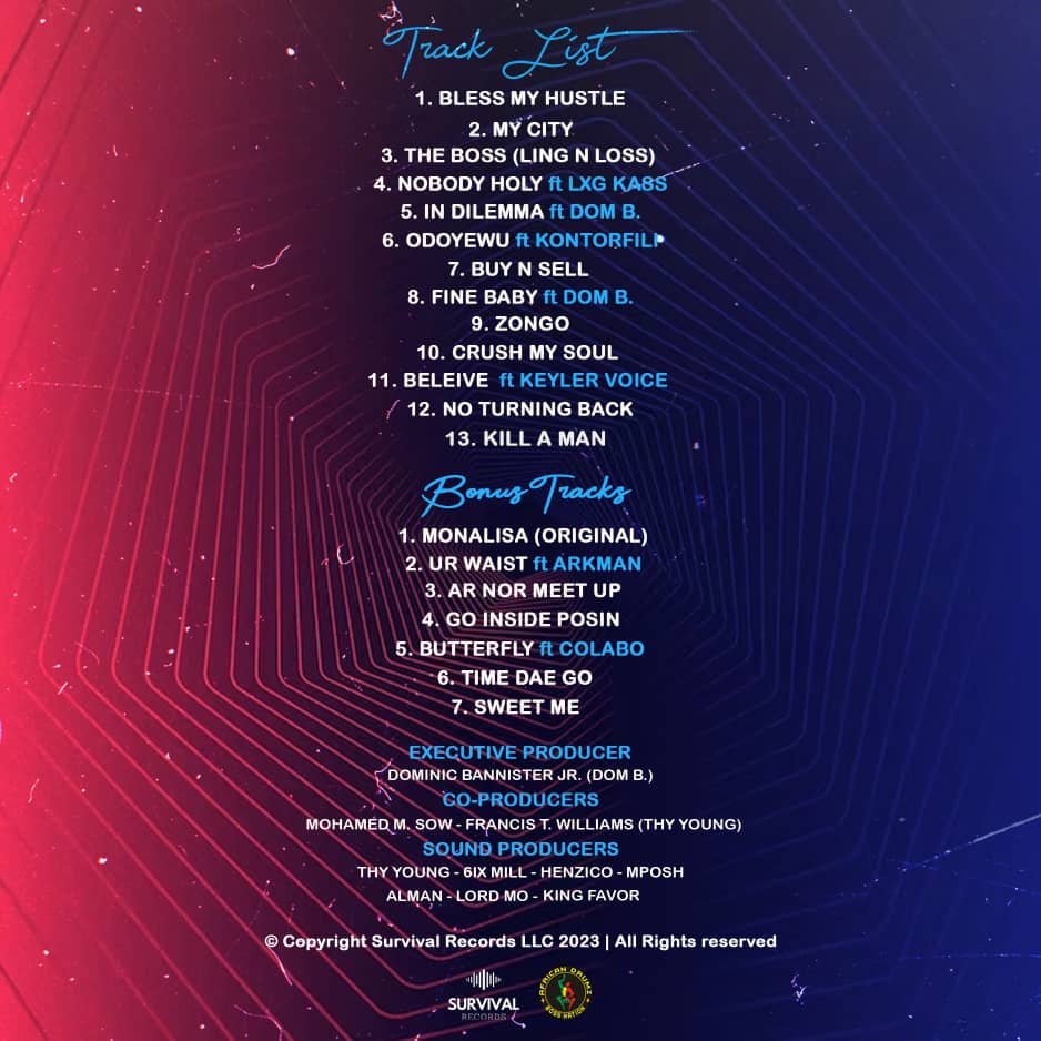 Some of the Tracks in the Album are “Bless My Hustle” is a musical journey. The title track sets the tone, a testament to hard work and resilience. “My City” is a love letter to hometown roots, while “The Boss (Ling N Loss)” is a confident anthem, showcasing the artist’s journey.