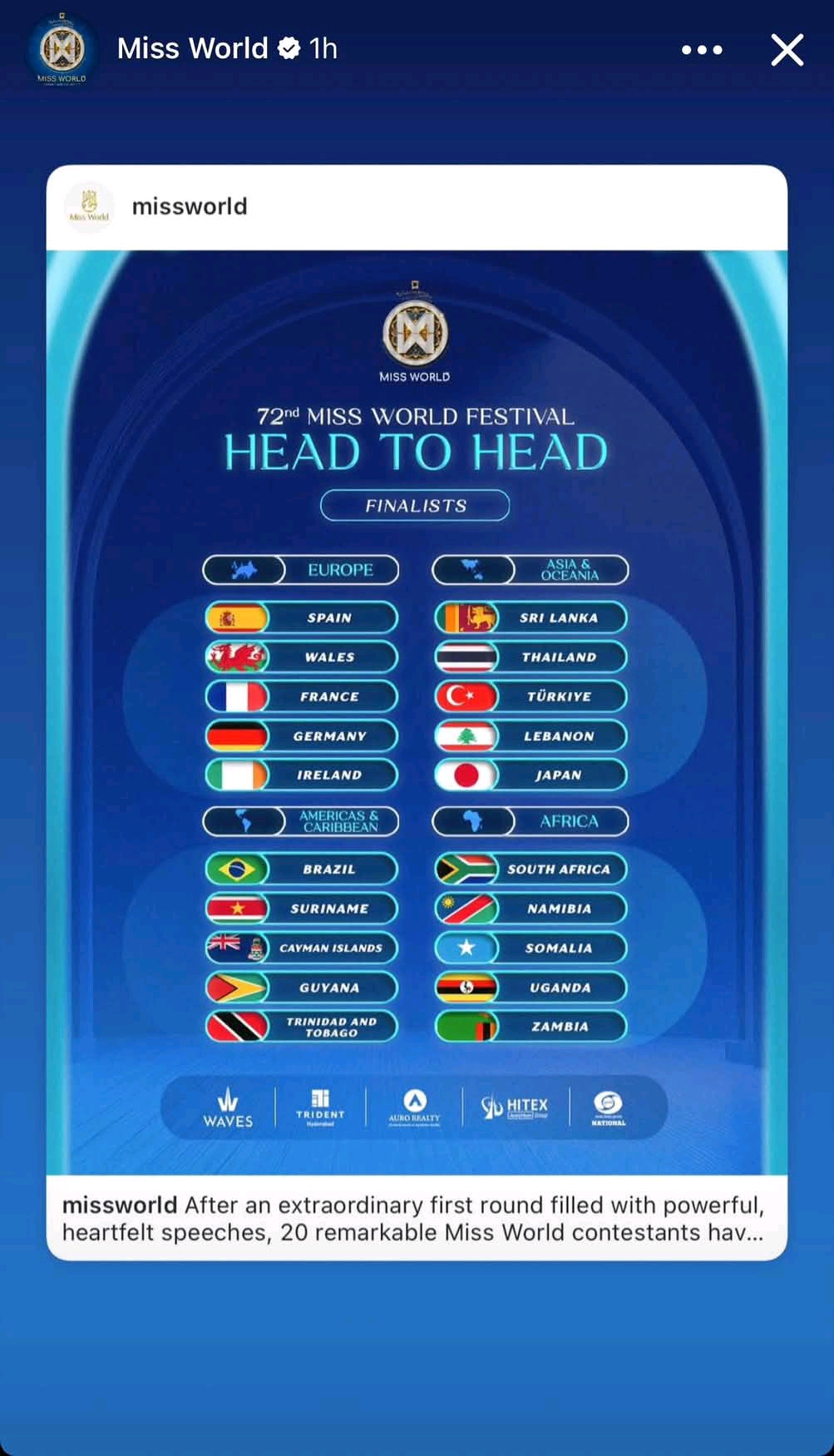The Miss World 2025 pageant began on May 7 and includes contestants from over 140 countries. Contestants who are not selected in the Head-to-Head Challenge still remain in the competition and can advance through other pathways.