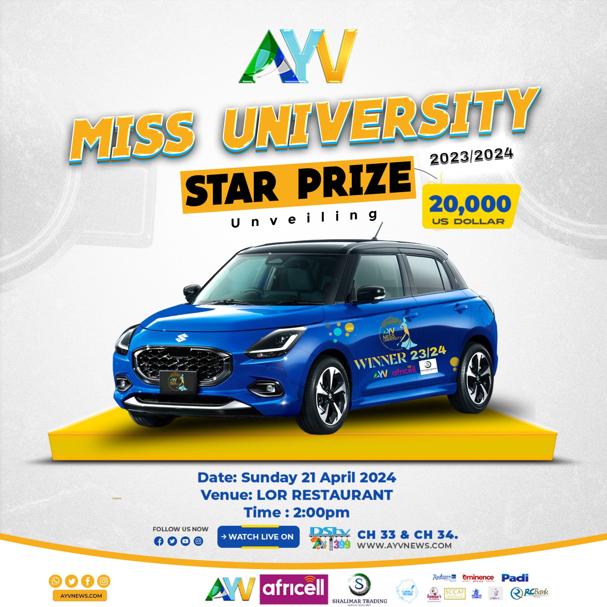 The AYV Miss University 2023/24 Pageant, organised by the AYV and Africell in partnership with the National Union of Sierra Leone Students (NUSS) and Eminence Africa, will feature nine university reigning queens, representing IPAM, FBC, UNIMTECH, COMAHS, Limkokwing, MMTU and UNIMAK, will be held at the Radisson Blu Mammy Yoko Hotel in Aberdeen, Freetown on 26th April, 2024.