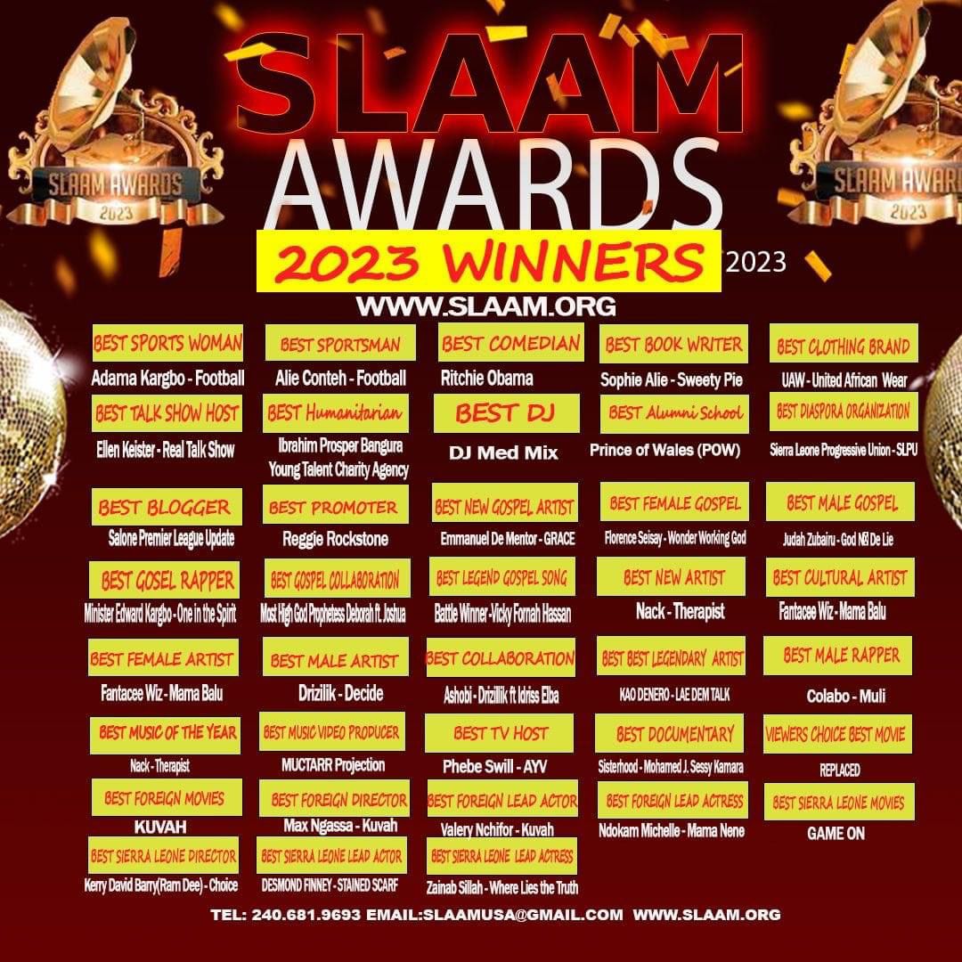 The Sierra Leone Association of Artists and Musicians (SLAAM) has unveiled the winners of its 8th edition which took place on Friday 2nd June 2023 in the United States of America.