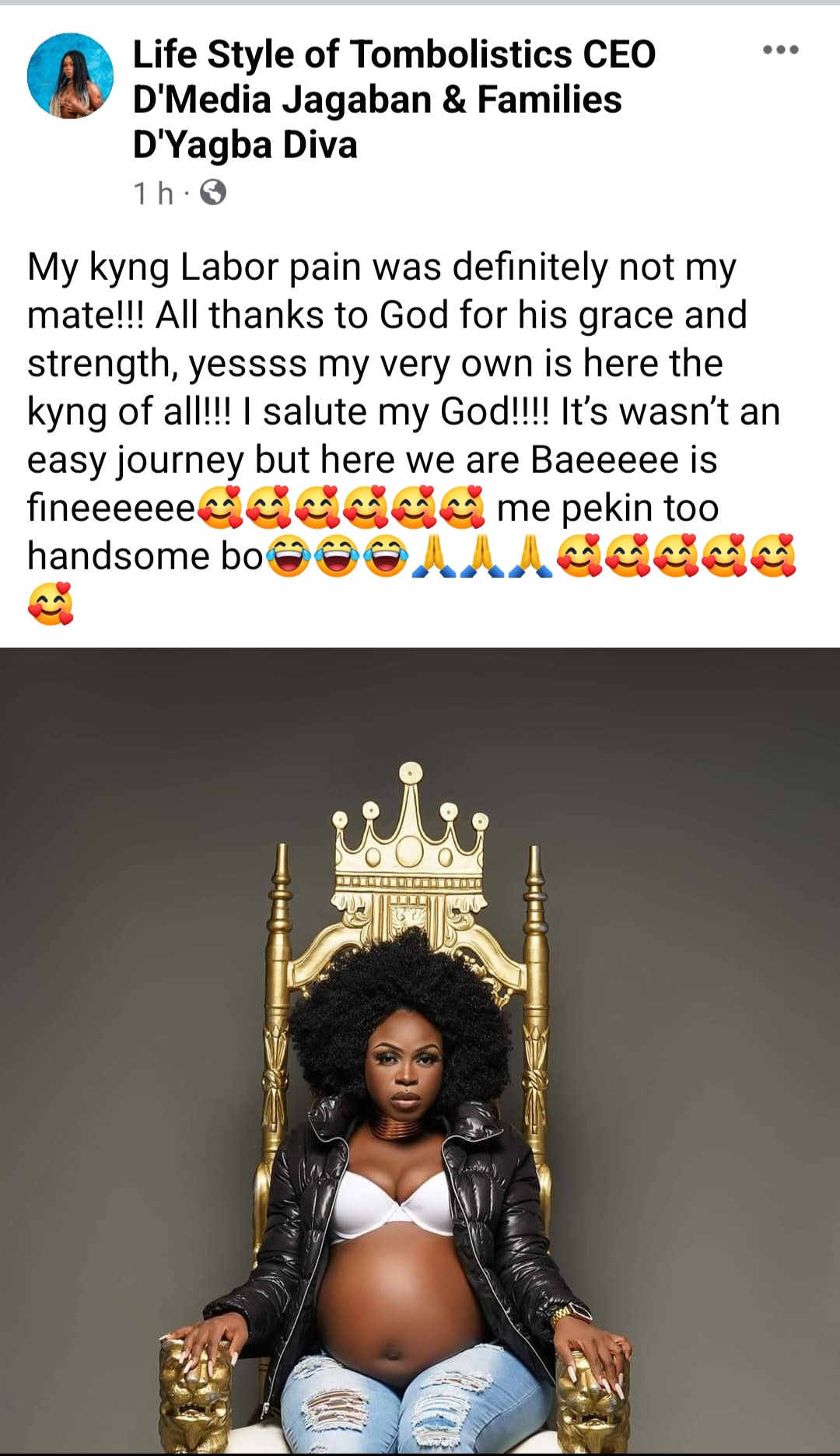 According to her post, she stated that the labour pain was not her mate. She referred to her newborn son as the king of all and acknowledged that the journey was not an easy one.