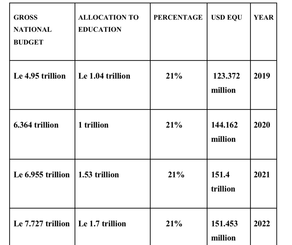 While delivering a speech at UNESCO’s 2021 Global Education Meeting on 22nd November 2021 Dr .Sengeh said “In the middle of the covid-19 pandemic while many countries contracted their education financing, Sierra Leone expanded its education sector budget to 22%”; a claim that has been proven quite false and misleading owing to the above data from the country’s Ministry of Finance.