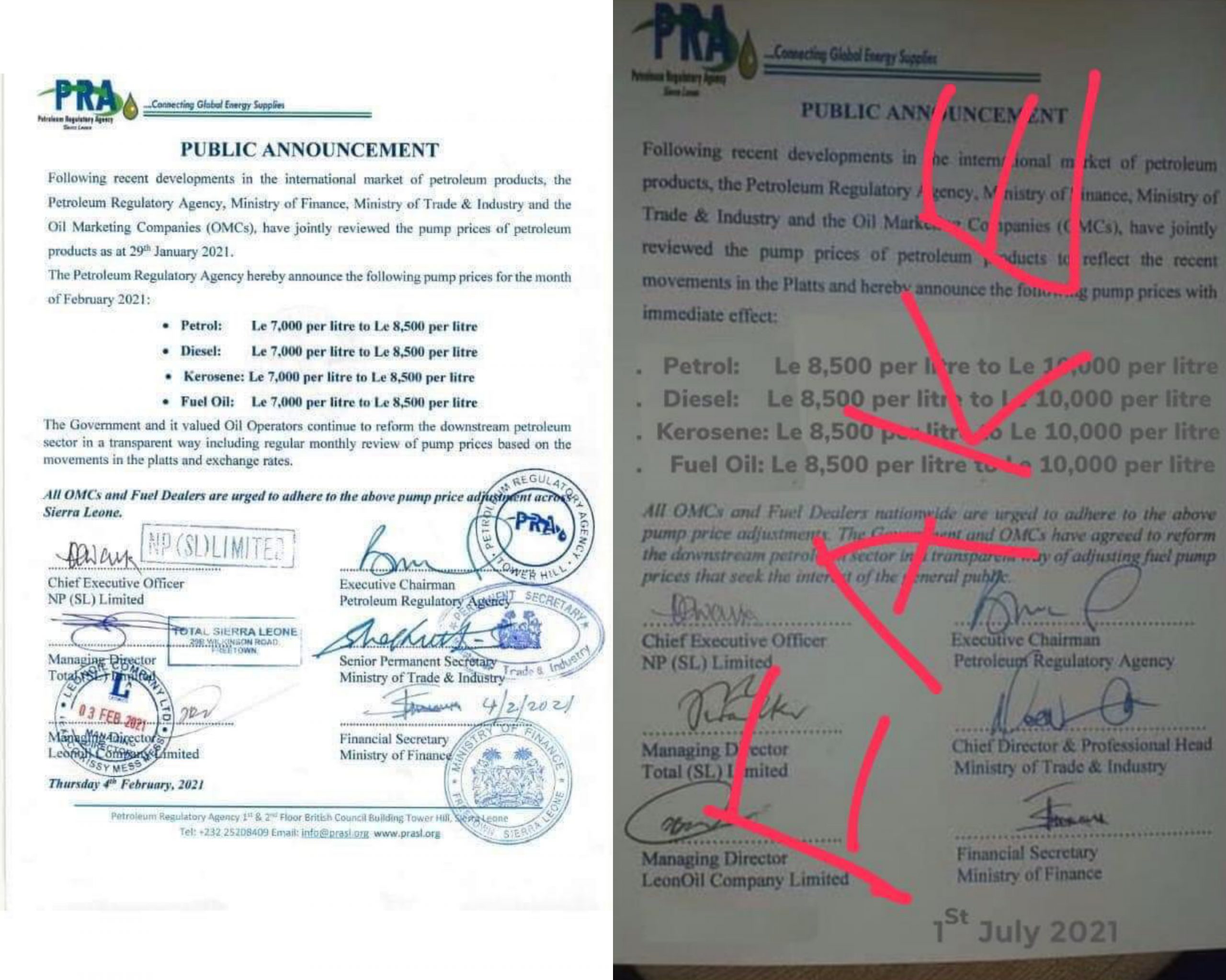 Sierra Leoneans have in recent days been greeted with reports and information about the increase in the pump price of petroleum products in the country from le8,500 to le10,000.