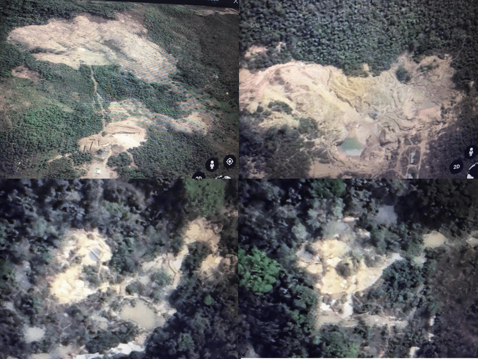 Photo: Satellite images showing four of twenty-five large illegal Chinese goldmines uncovered in Saalu and Njama, Penguia Chiefdom.