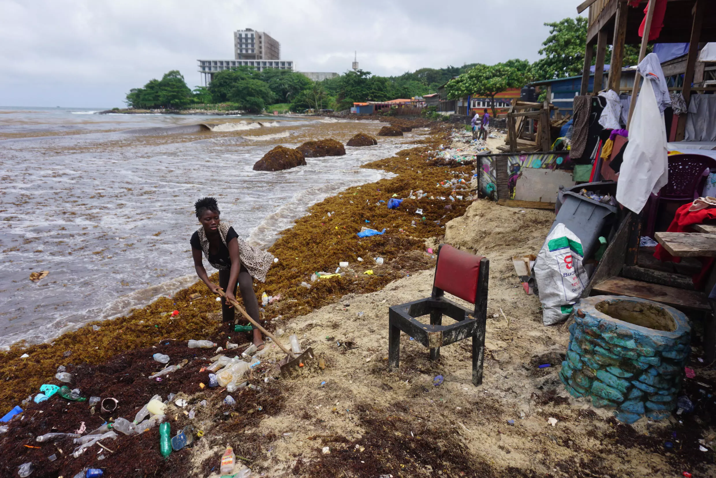 A mass of brown seaweed has for weeks choked the coastline of Sierra Leone’s capital Freetown, damaging fishing gear and disrupting tourism in a country otherwise known for its white-sand beaches.
