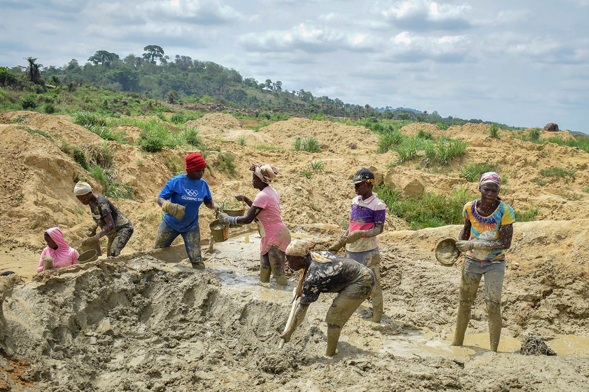 morning, streams of people head from Kono’s towns and villages to the bush looking for work. Arriving at the pits — deep, waterlogged, muddy sores dotting the landscape — they begin to ask for work, addressing managers of individual artisanal mines.