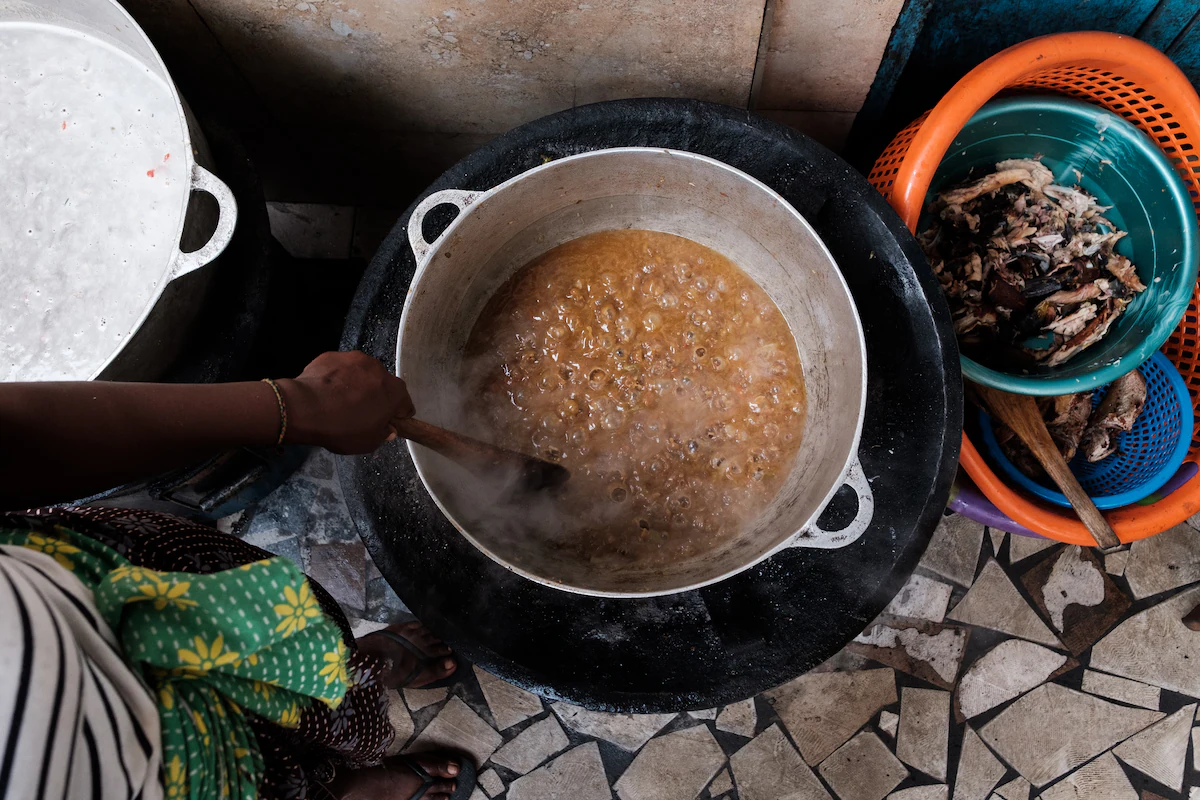 “This one is better,” Kamah, 45, said on a sweltering day in February. It was just after 9 a.m., and the new stoves were already fired up, steam rising from each of the massive silver pots on top.