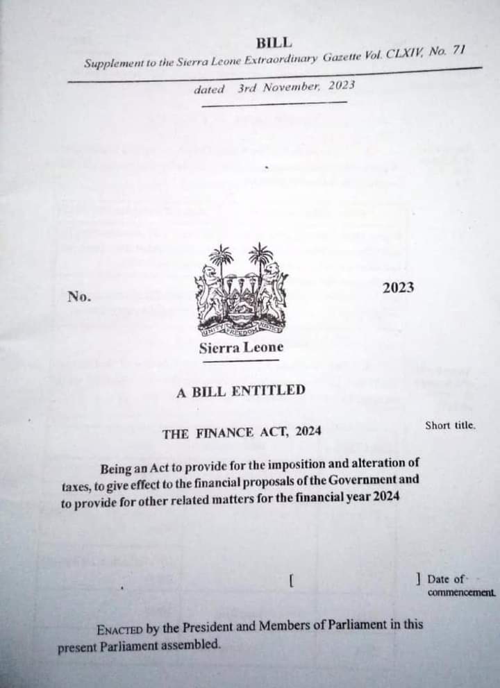 The unveiling of Sierra Leone’s Finance Bill 2024 yesterday in Parlaiment might be heralded as a mechanism for revenue enhancement, yet beneath its fiscal provisions lies a dense labyrinth of hardship for a populace already staggering under economic duress. Championed by the former World Bank staff, Honourable Minister of Finance, Sheku Ahmed Fatamadi Bangura, the bill, set to be enacted today, holds the potential to exacerbate the prevailing hardships faced by citizens.