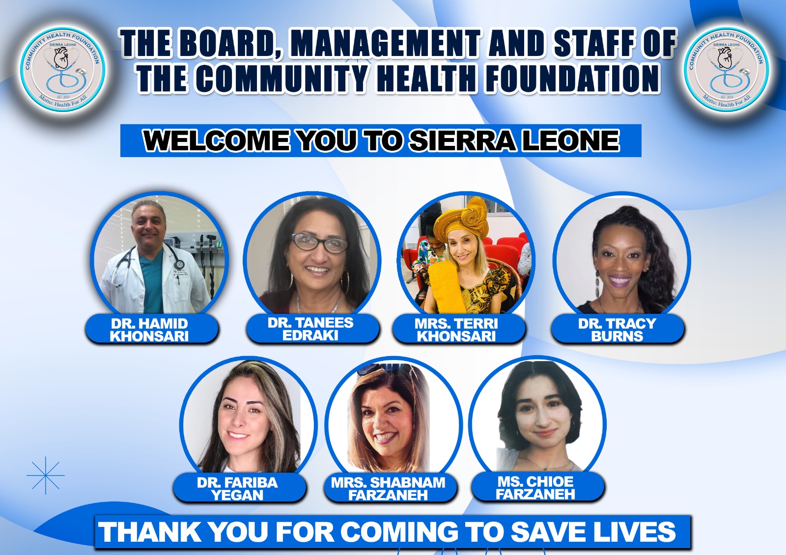 The Community Health Foundation is hosting Medical Doctors from USA with different specialists on a free Medical mission including surgeries for all population at CHF Medical Center in Mile 91. Tonkolili District.