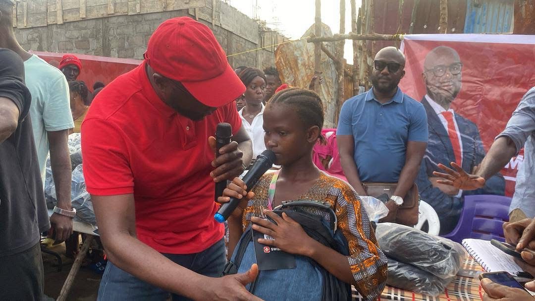 Ady Macaulay, Lawyer and flag-bearer aspirant for the All People’s Congress (APC), has distributed hundreds of school supplies to children affected by a recent fire outbreak in Aberdeen.