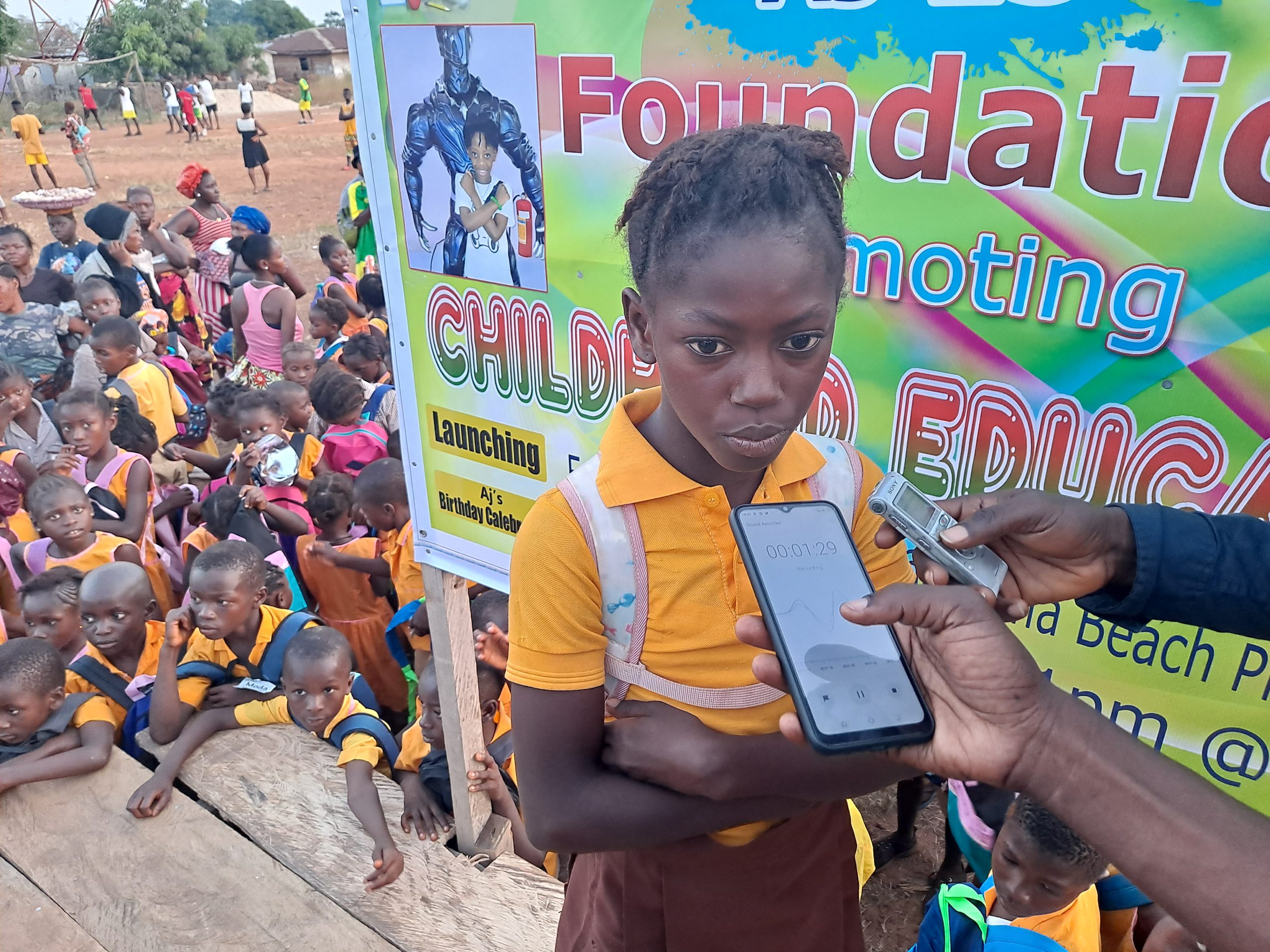 One of the beneficiaries, Ramatu Koroma, a class 3 pupil expressed thanks and appreciation to the AJ Foundation for the donations.