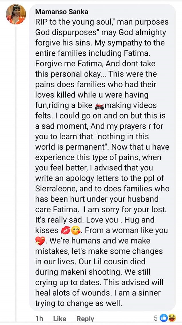 According to her, the time people were in pain for the lost of their love ones, that was the time Fatima Bio was busy making videos, having funs, riding bikes, etc.