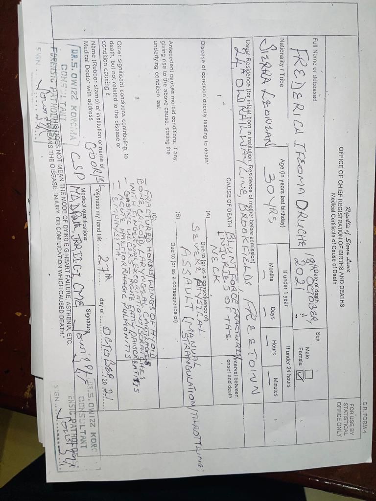 “Civil rights organizations, Women’s rights organizations, human rights organizations and all Sierra Leoneans humanitarian activists, let your voices be heard as we call for “JUSTICE FOR FREDERICA IFEOMA ORUCHE. 😭✊🏿