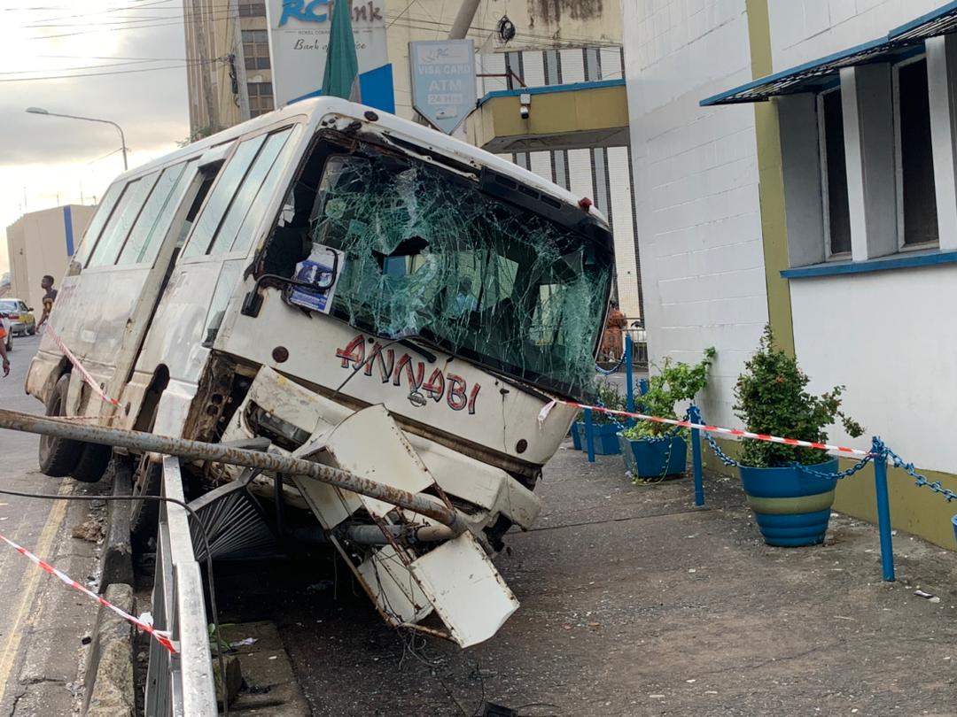 A white Nissan minibus plunged into a sidewalk in the central business district of the Sierra Leonean capital, Freetown.