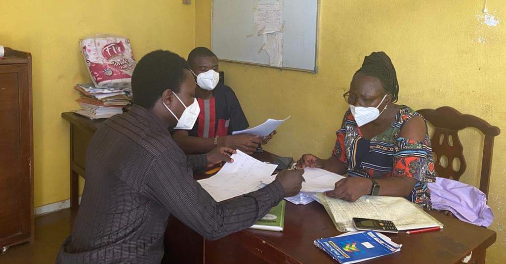 U.S. CDC-Sierra Leone’s John K. Amara, a nurse and workforce development officer, is seen with Lakka Government Hospital (TB infectious facility) staff reviewing infection prevention and control data and practices.