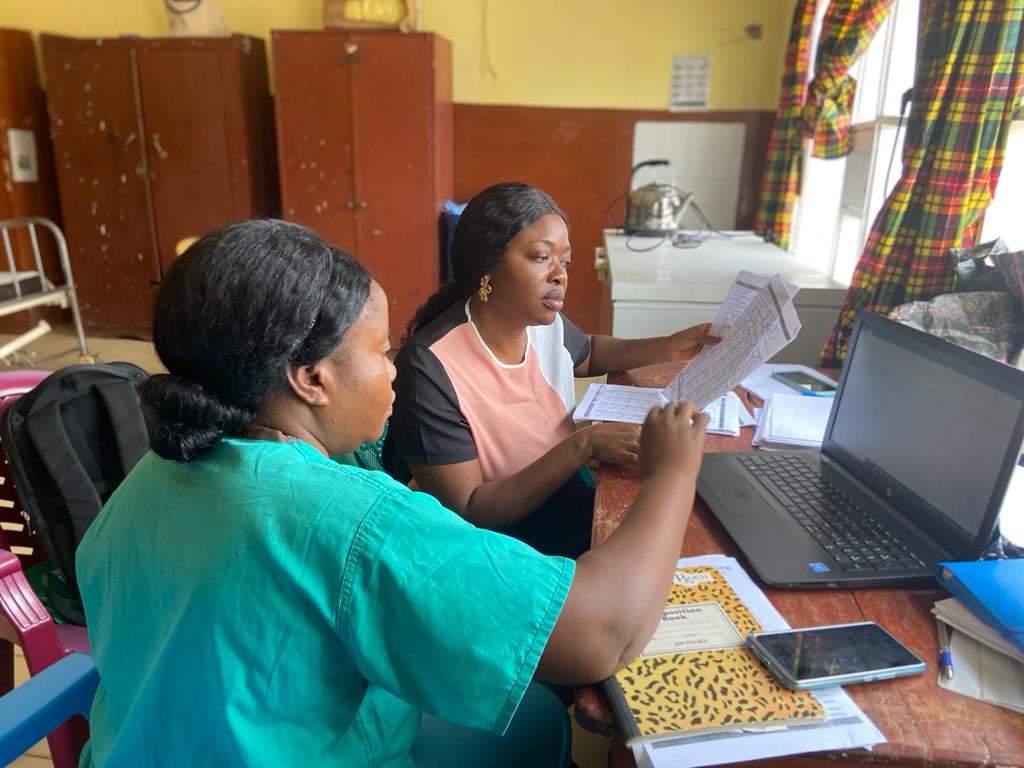 U.S. CDC-Sierra Leone’s Dr. Rugiatu Kamara, a physician and lead for infection prevention and control and antimicrobial resistance, conducts a supervision and mentorship visit at Kabala government hospital with staff trainees of the National Advanced IPC Training Program.