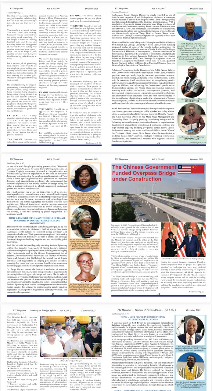 Among the contributors were Senator Cyrus Momo, Dr. Kandeh Kolleh Yumkella, Ambassador Soulay B. Daramy, Madam Francess P. Alghali, Dr. Mory Sumaworo, Ambassador Dr. Francess V. Anderson, Dr. Tanya Ansahta Garnett, and Ambassador Dr. Victoria M. Sulimani.