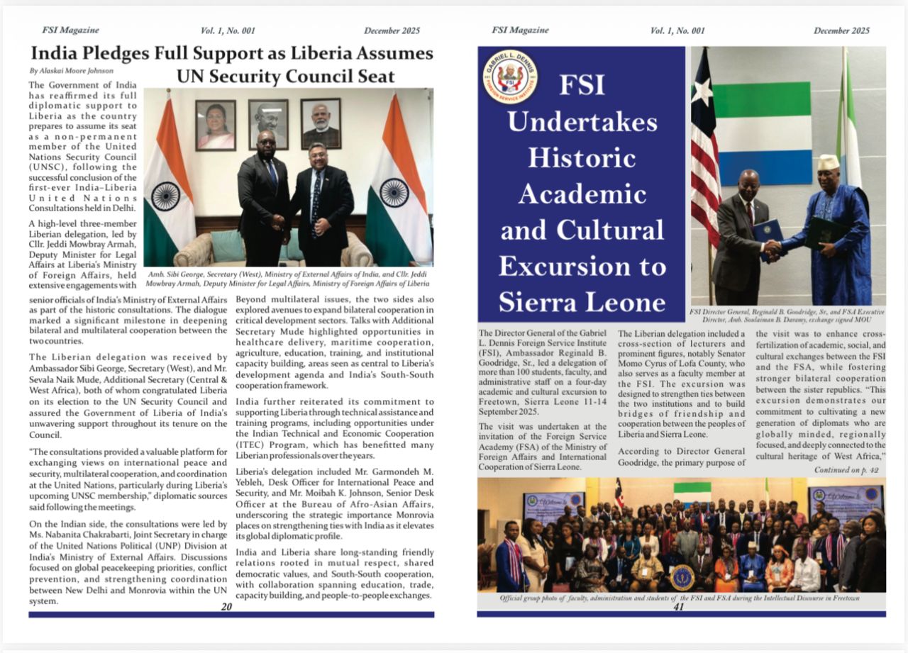 The report, titled Annual Academic and Cultural Excursion Report, documents a landmark engagement between Liberia’s Foreign Service Institute and Sierra Leone’s Foreign Service Academy (FSA), held in Freetown from September 11 to 14, 2025.