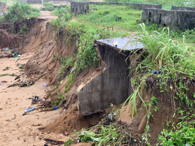 Lovetta Kamara, who stays close to the cemetery, explained that it was on Sunday morning that they observed that flooding had washed part of the cemetery away- she blamed it on the blockage of water passage and other illegal human activities around the beach.