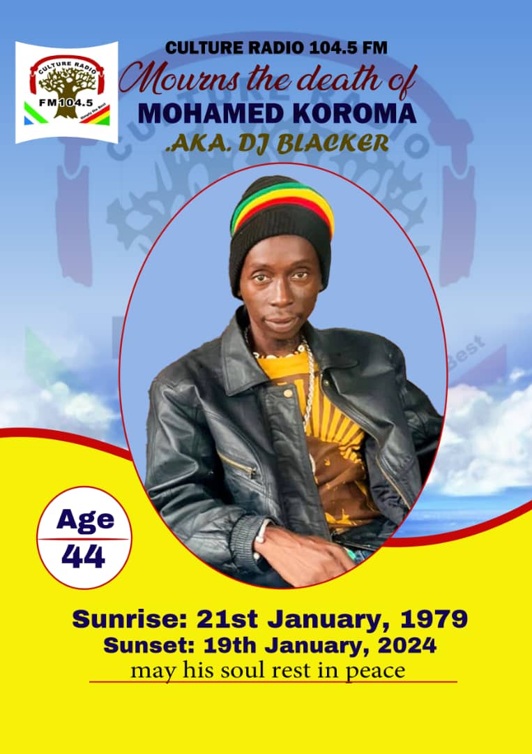 It is with deep sorrow that Culture Radio announces the passing of Mohamed Koroma, affectionately known as Dj Blacker, who faithfully served the radio station since its inception. Dj Blacker’s demise occurred on January 19, 2024.