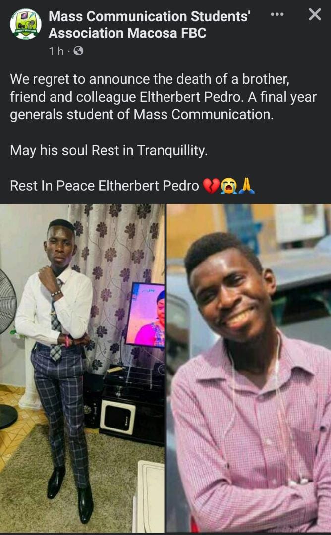 Popular Mass Communication Student at Fourah Bay Ethelbert Pedro has been announced dead.