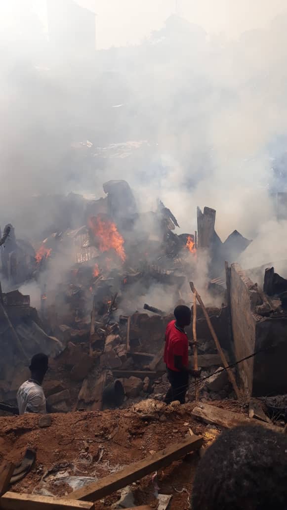 A Fire outbreak has occurred at Tengbeh Town just after the first Bridge in Freetown, Sierra Leone.