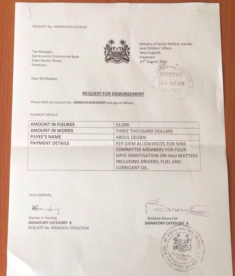Social media was abuzz yesterday when reports when wild that the Permanent Secretary of the MSWGCA, Momo Bockarie Foh has been caught involving a secretly duplicated Hajj dollars account at the Sierra Leone Commercial Bank.