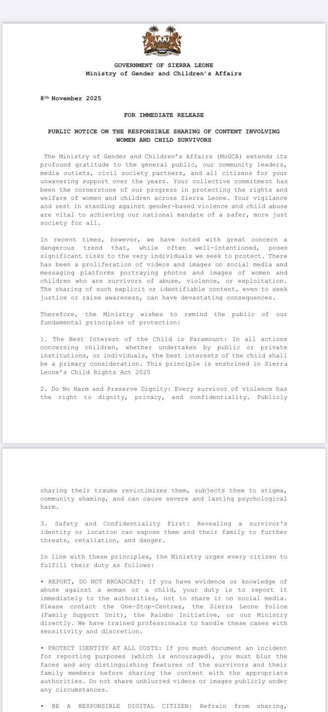 “Your collective commitment has been the cornerstone of our progress in protecting the rights and welfare of women and children across Sierra Leone,” the ministry said. “Your vigilance and zest in standing against gender-based violence and child abuse are vital to achieving our national mandate of a safer, more just society for all.”