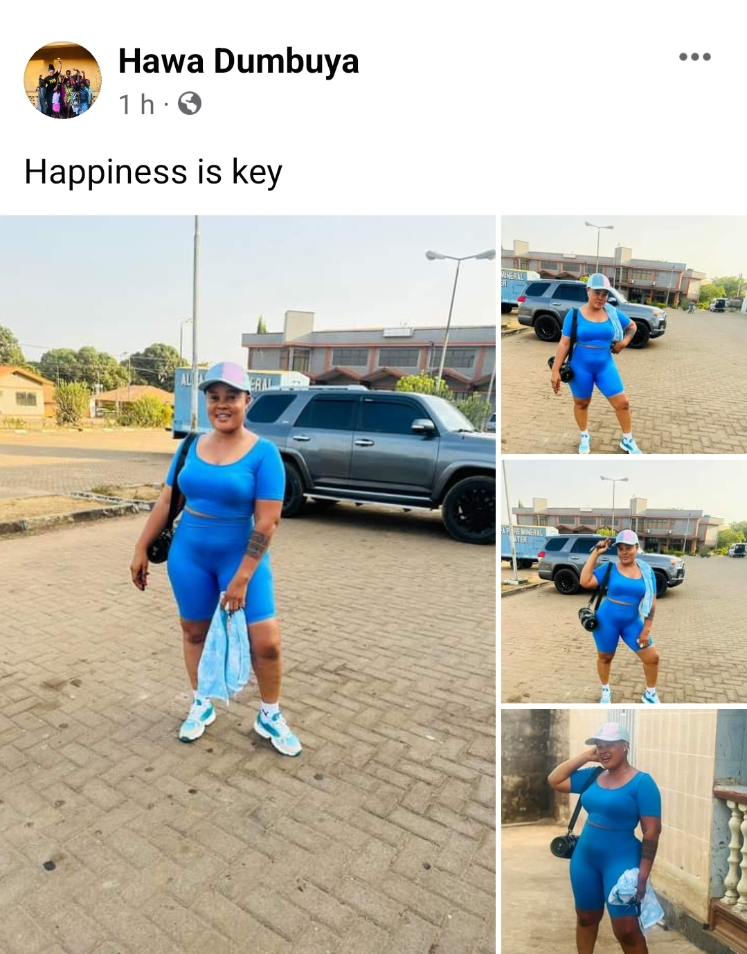 The ever-trending wife of Musa Tombo has caused a stir on social after she decided to change her name from ‘Hawa Kamara’to ‘Hawa Dumbuya’ with the latest caption happiness is key.