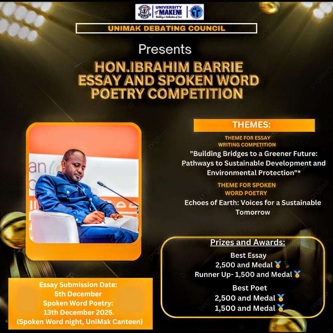 Honourable Ibrahim Barrie of Bombali District, known for his dual role as a lecturer and lawmaker, has once again demonstrated his unwavering commitment to education by fully sponsoring this year’s University of Makeni Debating Council (UDC) annual spoken poetry and essay writing competition.