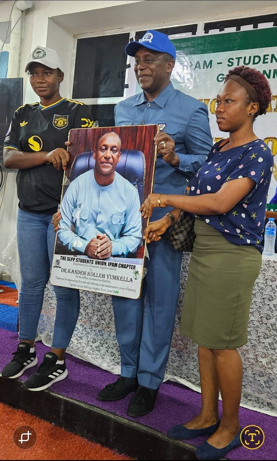 At the end of the ceremony, the SLPP Students’ Union at IPAM presented Dr. Yumkella with a framed portrait as a token of appreciation for his continued support and contribution to student engagement and political awareness.