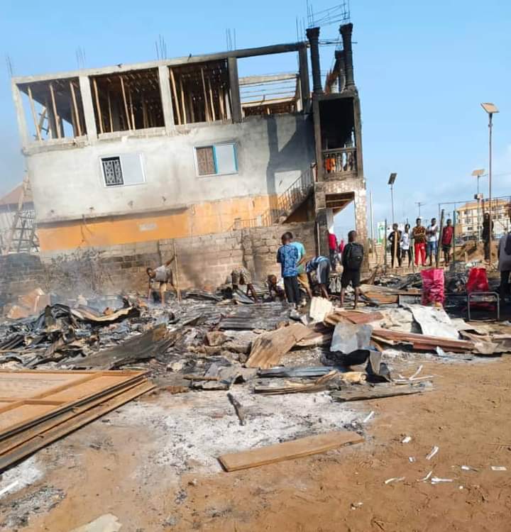 On Sunday February 26, 2023 around midnight in Kambia, Barry wrote that a mysterious fire took over his younger brother’s spare parts shop and burned it to the ground.